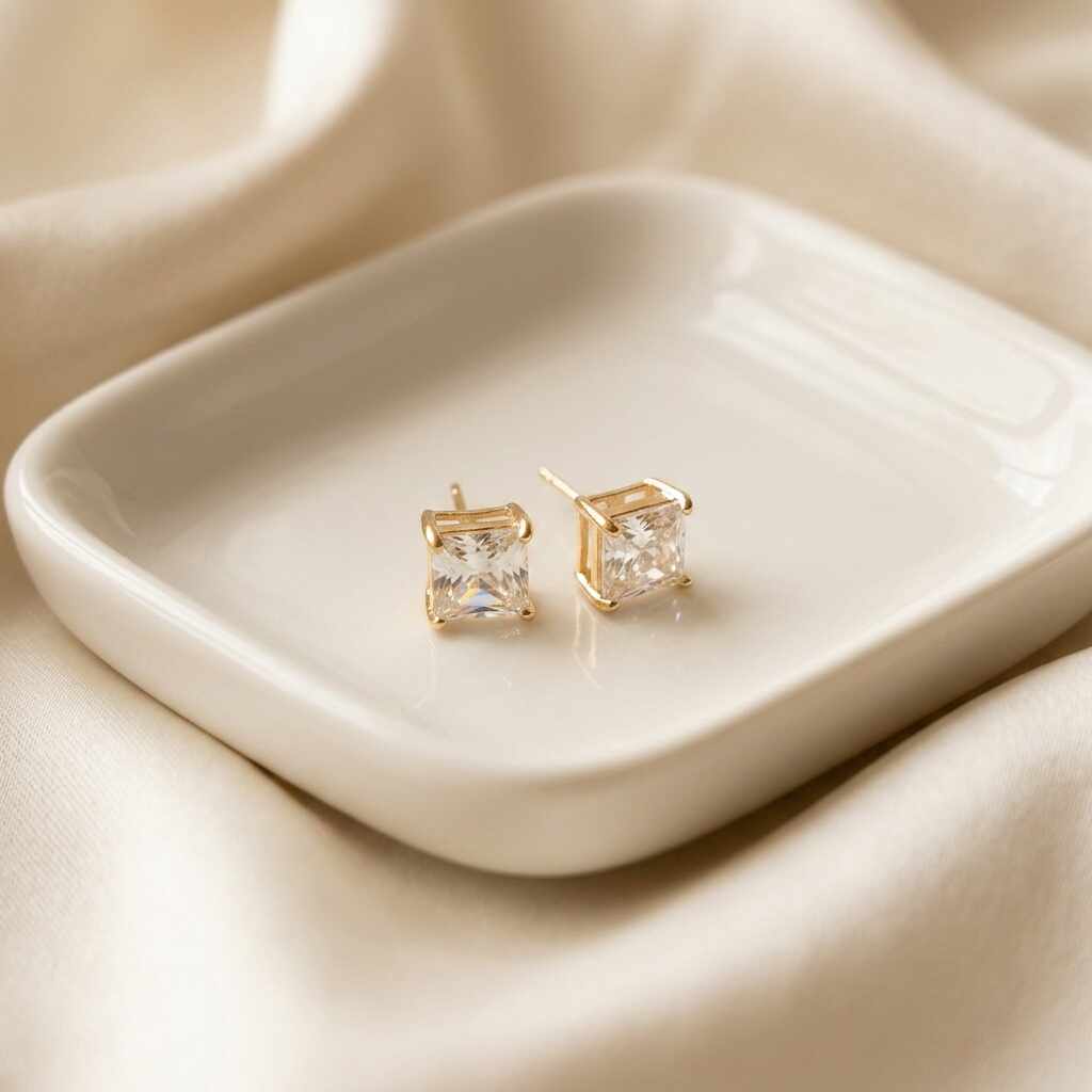 Brinco Quadrado Texturizado Madrepérola