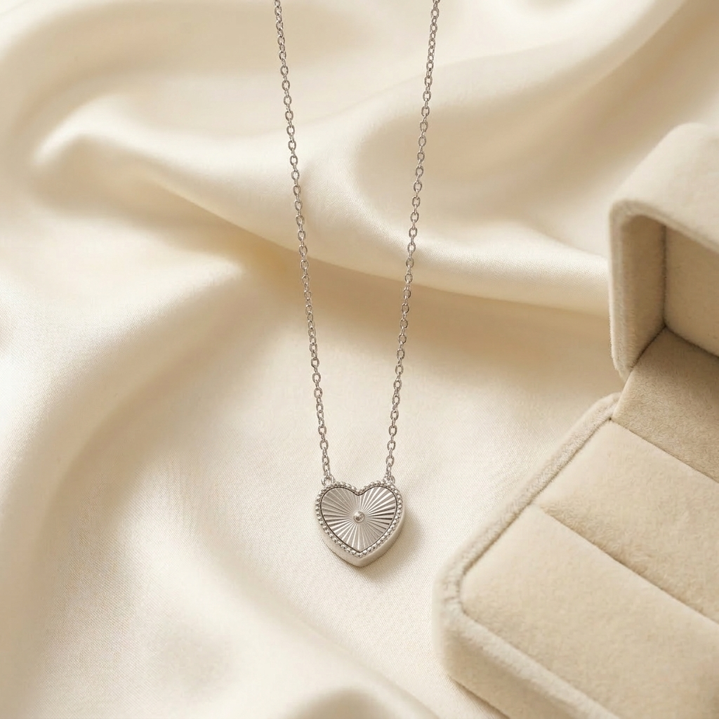 Colar Coração Riscado Ródio