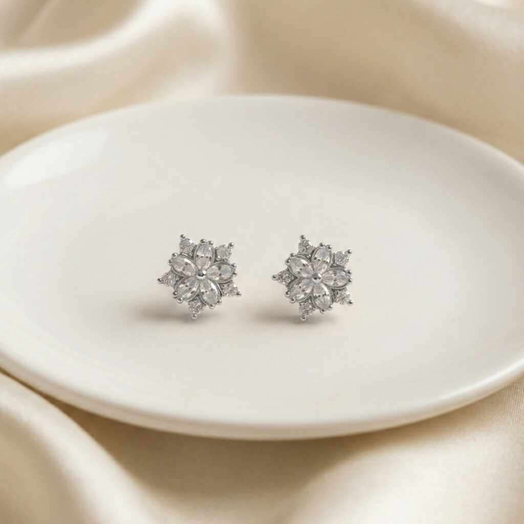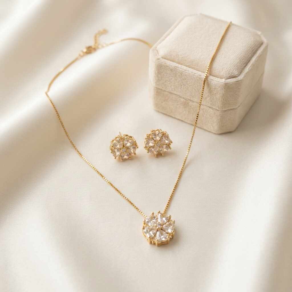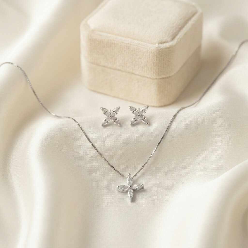 - Conjunto Flor Quatro Pétalas Cristal Ródio