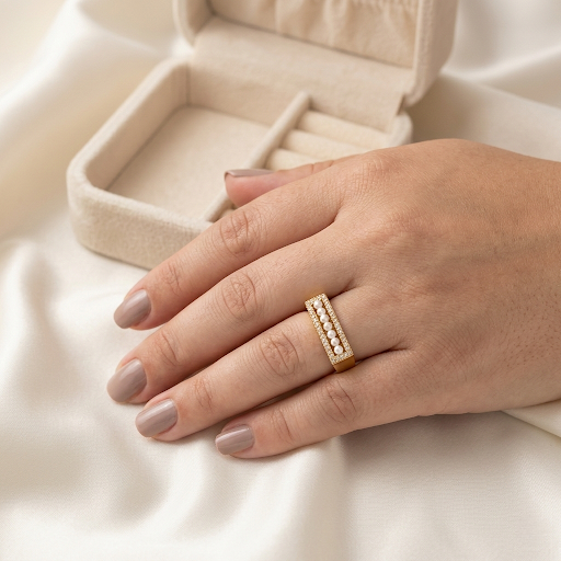 Anel Geométrico Cravejado com Pérola