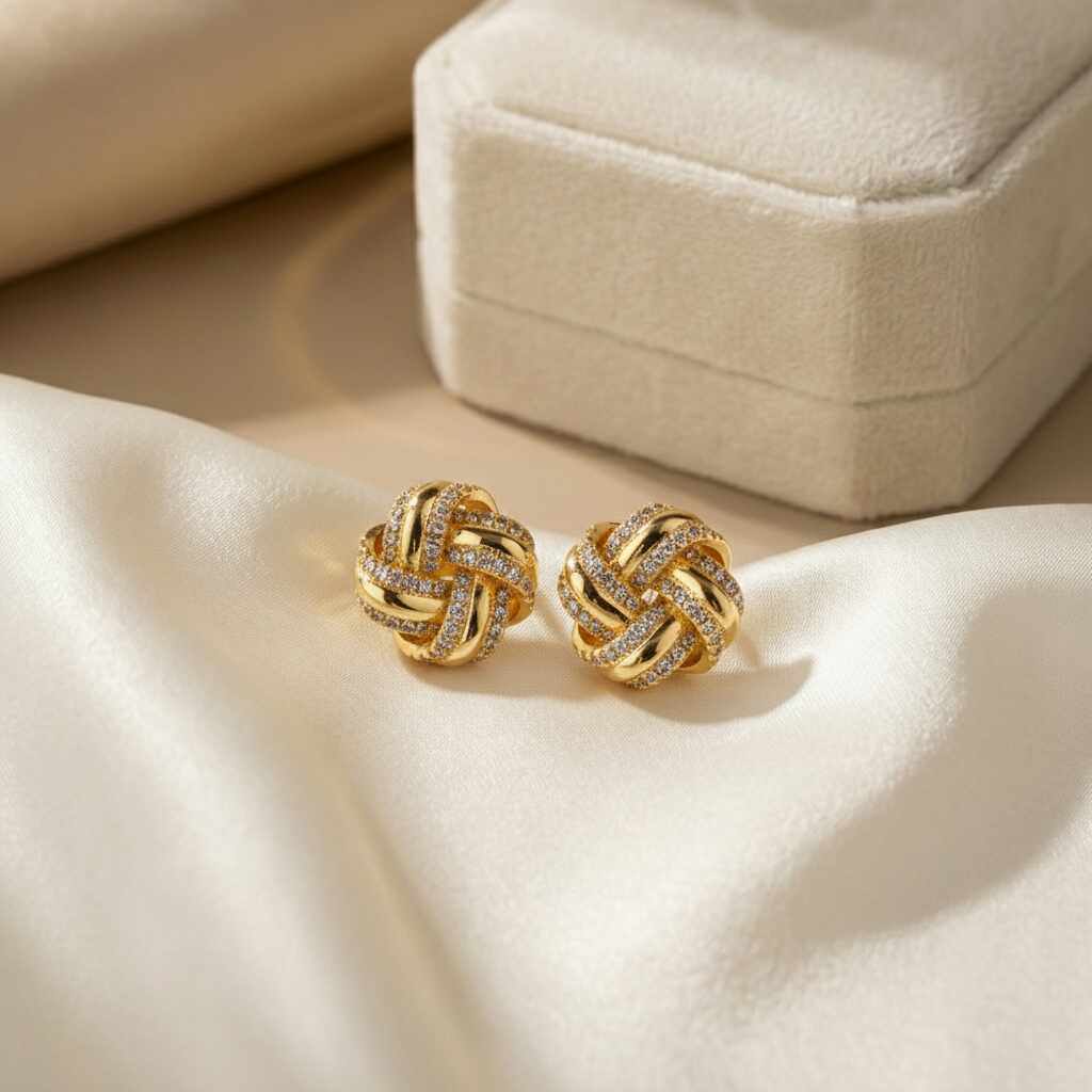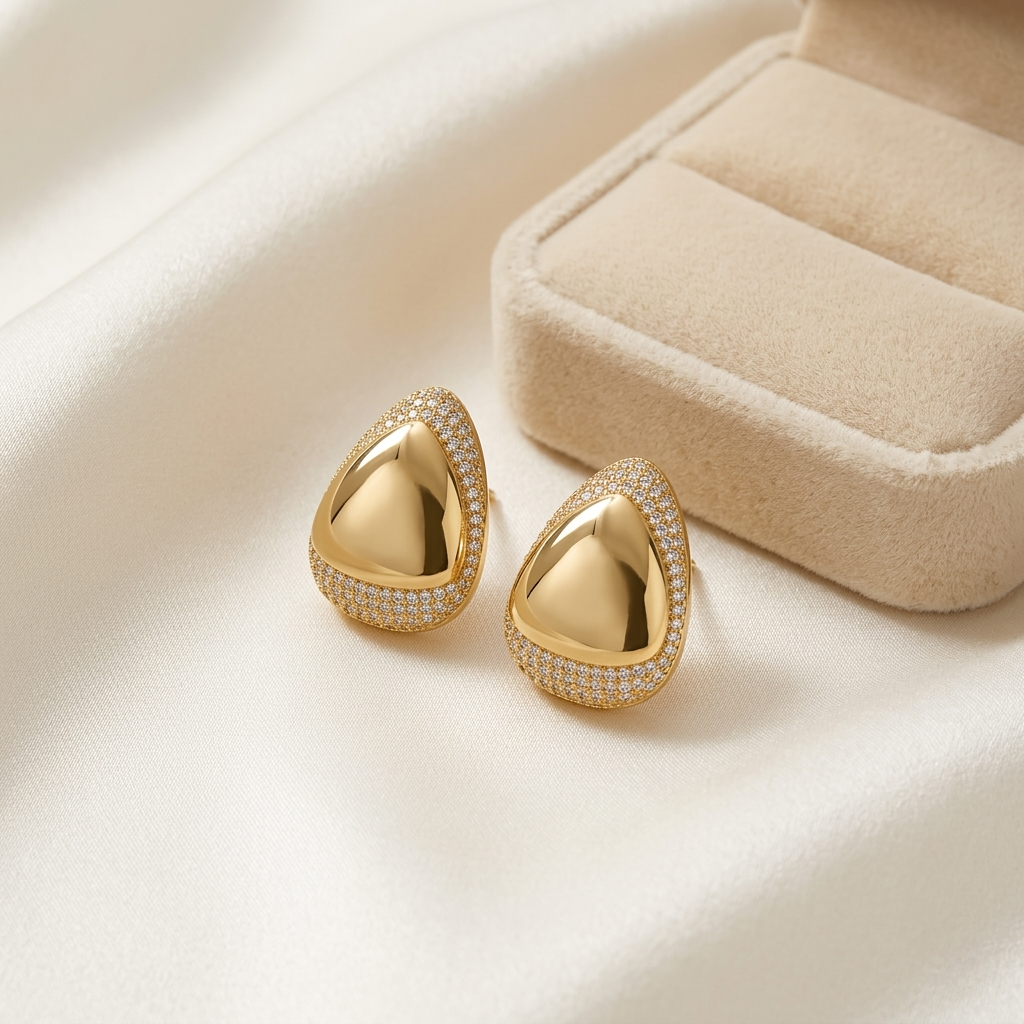 Brinco Botão Gota Cravejado Ouro