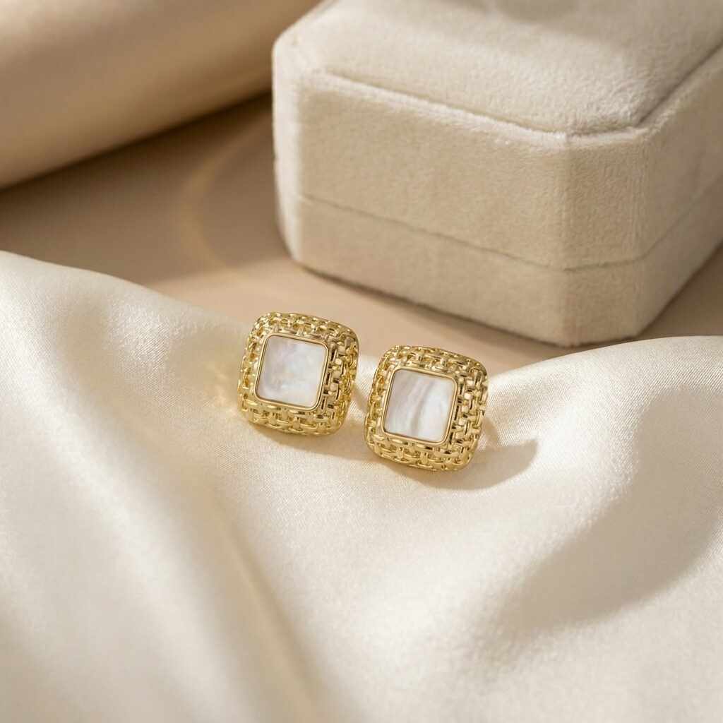 - Brinco Quadrado Texturizado Madrepérola