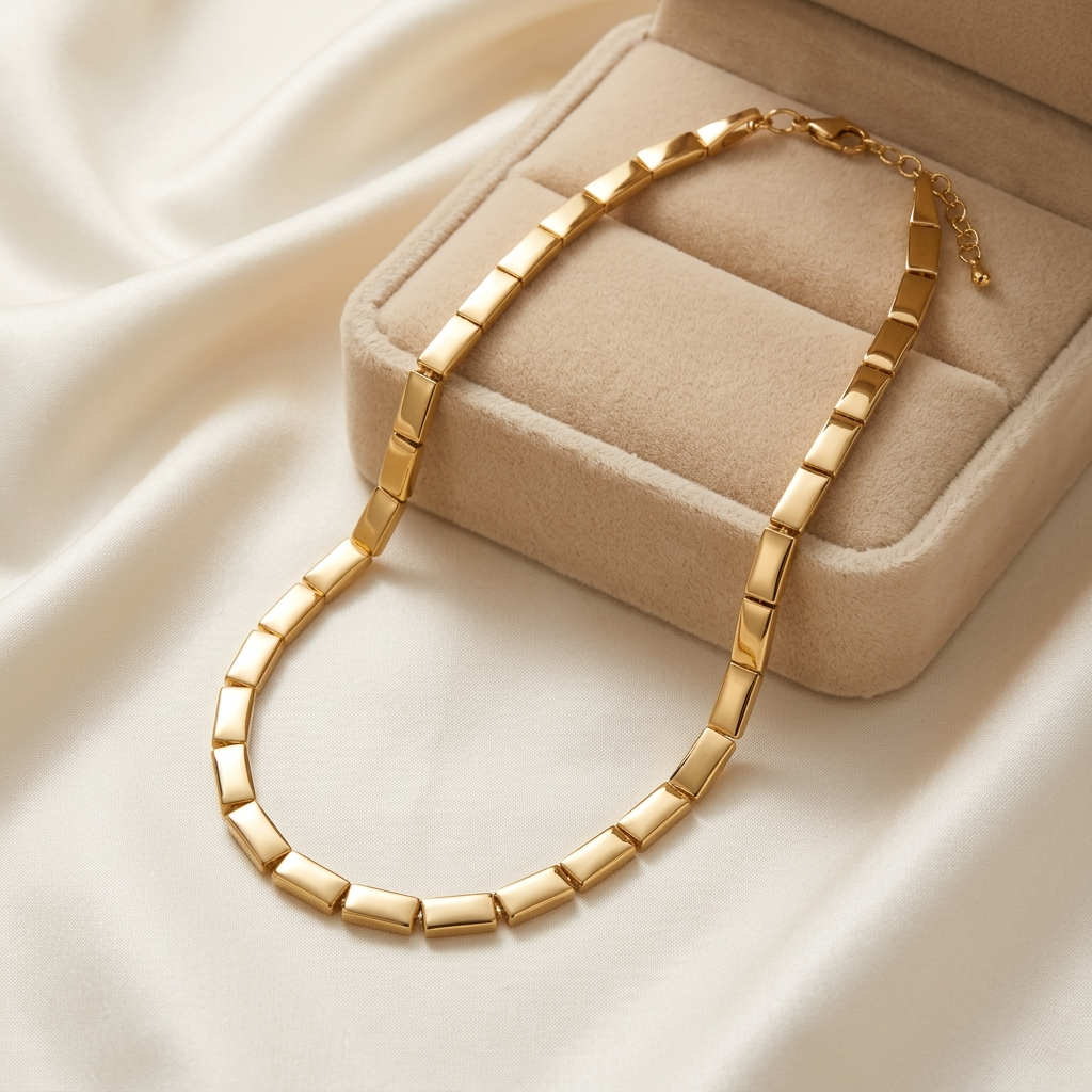 Colar Choker Plaquinhas Lisas Douradas Ouro